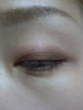 這是先用了淺粉紅打了底,再將深咖啡畫在眼摺處當眼線,下眼線2/3處
